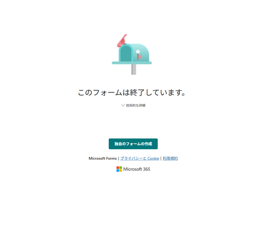 何卒ご理解賜りますようお願い申し上げます。締め切りとなった場合、以下のような画面が表示されます。