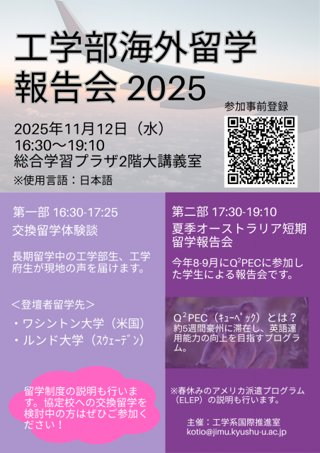 工学部海外留学報告会を実施します。