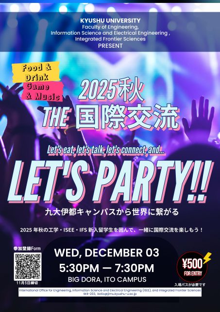 (2025年秋期に初めて九州大学に入学した新入留学生は無料招待)
