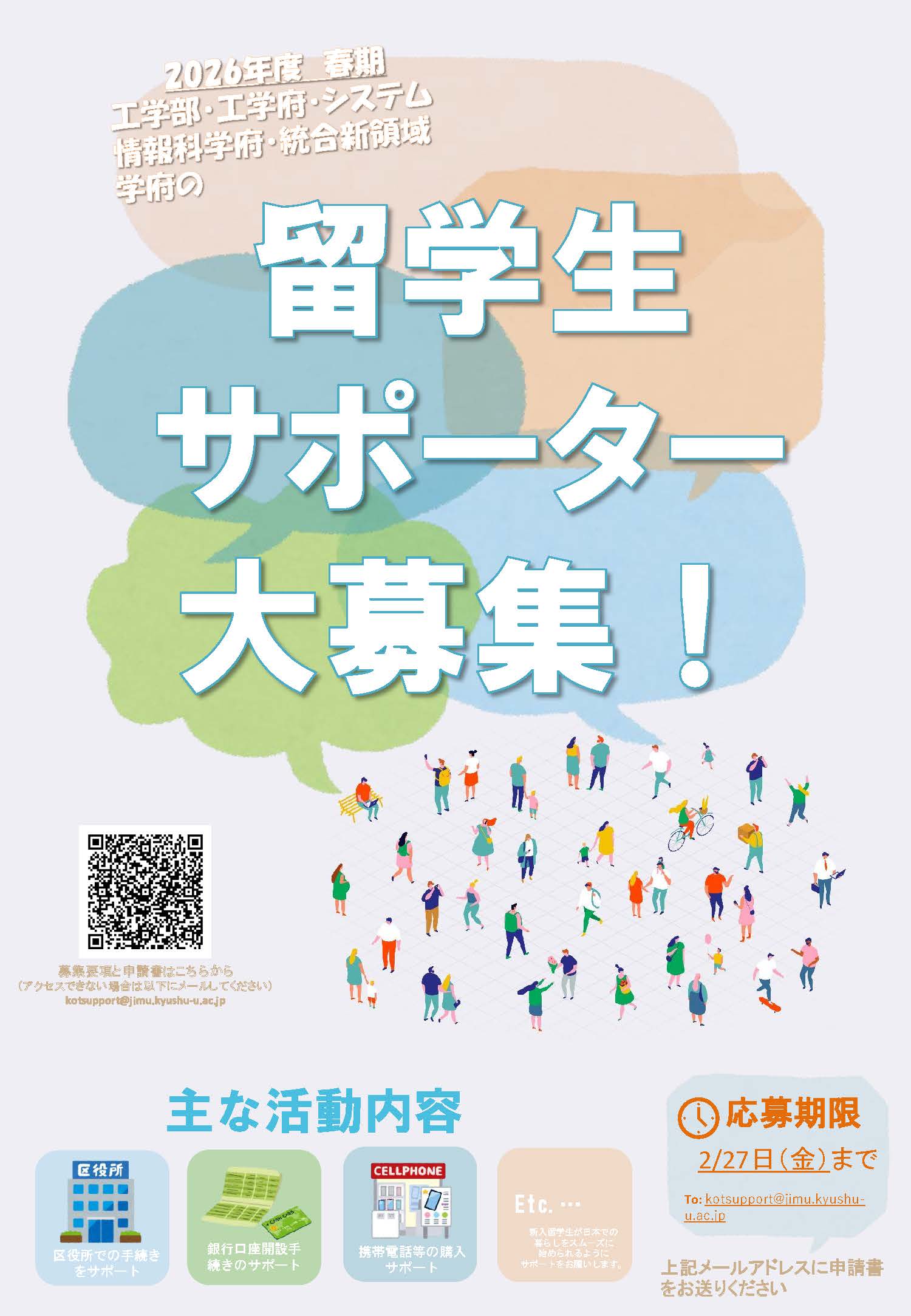【2026年春期 工学部・工学府・シス情・統合新領域学府 留学生サポーター】