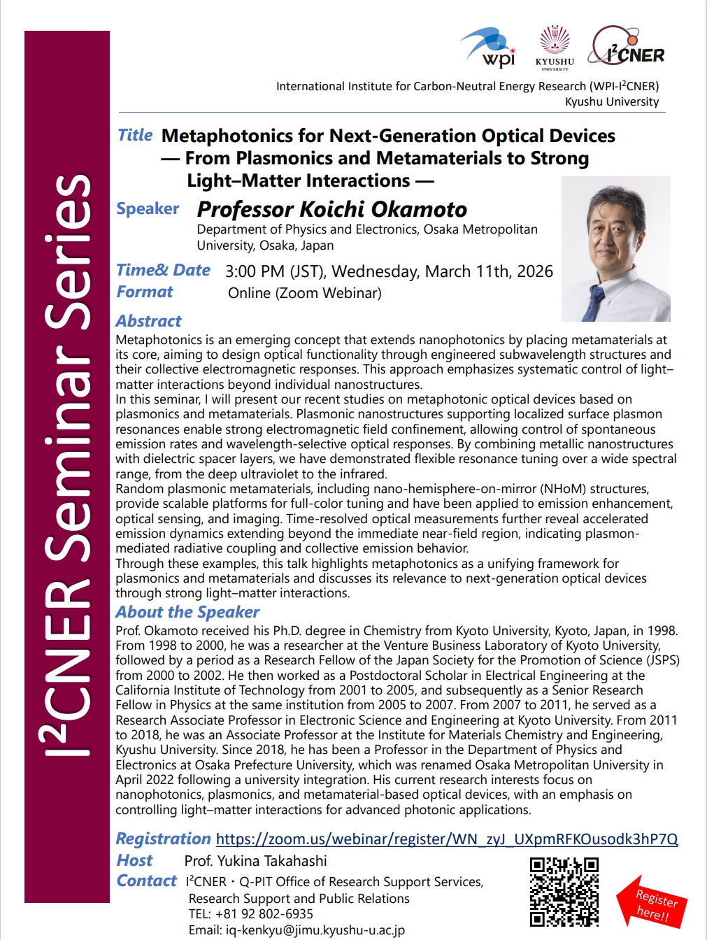 演題:"Metaphotonics for Next-Generation Optical Devices